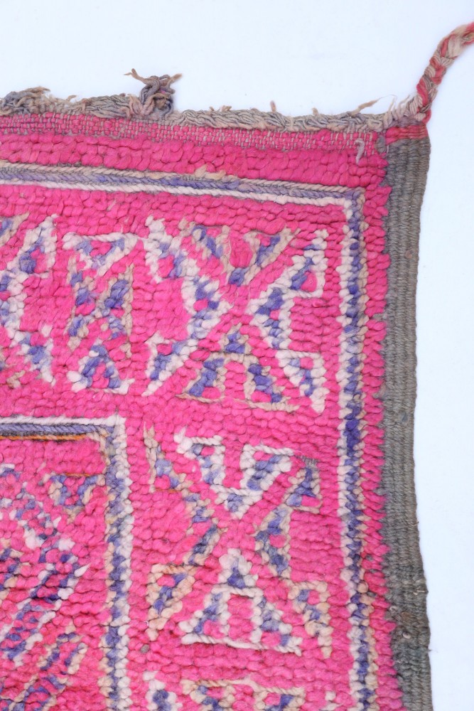 Tapis Boujad ancien en laine confectionné à la main sur un métier à tisser traditionnel dans les montagnes de l'Atlas au Maroc.