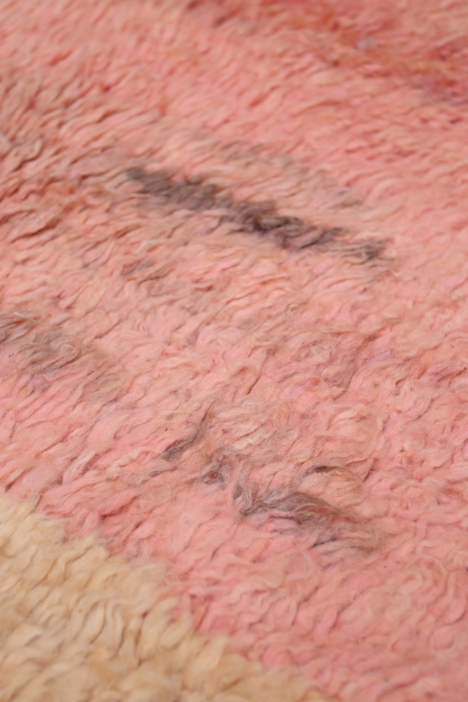 Ce tapis berbère que l'on appelle Azilal tient son nom de la région d'Azilal au Maroc où il a été confectionné à la main sur un métier à tisser traditionnel en bois. Ses motifs représentent les humeurs, les amours, les peines de la tisseuse au moment de sa création. Une fois ce tapis berbère coloré créé, elle en confectionnera un autre totalement différent, en fonction de ses émotions du moment. Chaque pièce est donc unique.