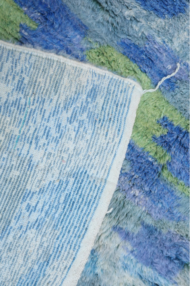 Ce tapis berbère que l'on appelle Azilal tient son nom de la région d'Azilal au Maroc où il a été confectionné à la main sur un métier à tisser traditionnel en bois. Ses motifs représentent les humeurs, les amours, les peines de la tisseuse au moment de sa création. Une fois ce tapis berbère coloré créé, elle en confectionnera un autre totalement différent, en fonction de ses émotions du moment. Chaque pièce est donc unique.