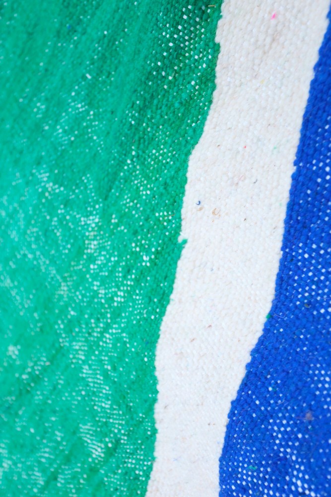 Grand tapis berbère Kilim en laine moderne avec des aplats de couleurs en bleu rose et vert