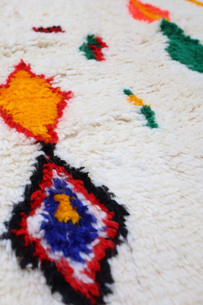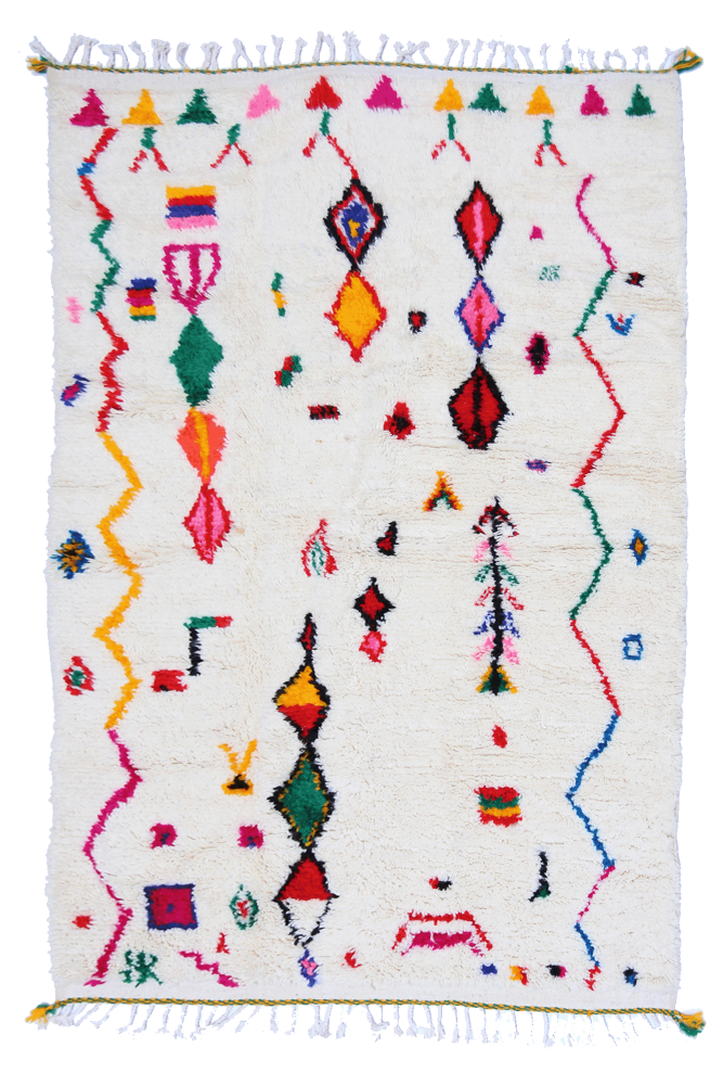 I'm sorry, but the text you provided is incomplete. Could you please provide more context or the full sentence you would like me to translate from French to Italian?tappeto AzilalProviene da una tribù della regione rocciosa e alta di Azilal, situata sulle montagne dell'Alto Atlante. Questo tappeto berbero rosso presenta numerosi motivi astratti con diversi simboli berberi. Questo tappeto, sia a pelo lungo che corto, mette in risalto il colore, spesso su sfondo beige, bianco o avorio.Puoi trovare modelli che valorizzano il colore rosso con motivi geometrici che simboleggiano la fertilità, la protezione, la natura, la fortuna o il focolare.(i motivi saranno principalmente a losanga, si trovano meno tappeti berberi a pois per la tribù Azilal). Questi modelli di tappeti marocchini sono spesso associati atappeti berberi fluorescentiPer via della loro miscela di colori vivaci e sfavillanti.