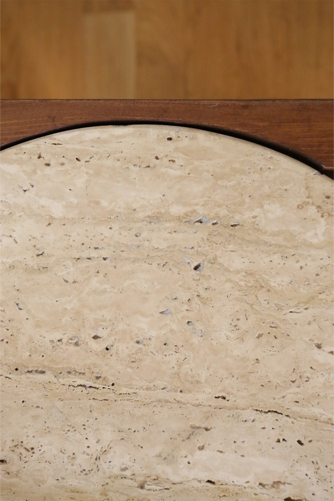 Tavolino in travertino beige e legno realizzato artigianalmente in Marocco. Tavolino in travertino e legno Tavolino in travertino e legno
