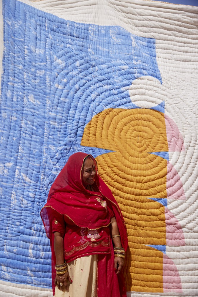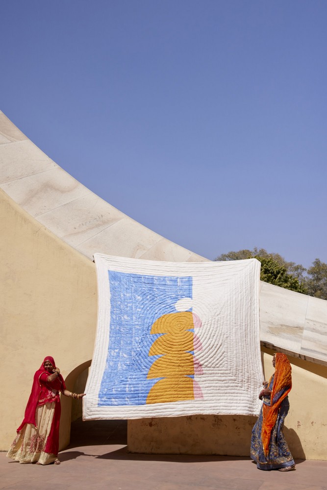 Il marchio californiano collabora con artigiani in India, che tessono ogni pezzo a mano con maestria tradizionale.