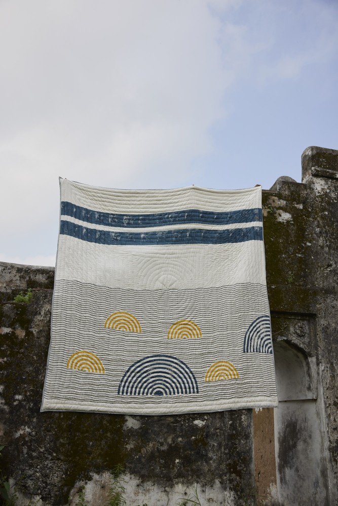 Anche i motivi sono realizzati interamente a mano, grazie alla tecnica del block print: blocchi di legno intagliati a mano, immersi in tinture naturali, per un risultato unico e autentico.