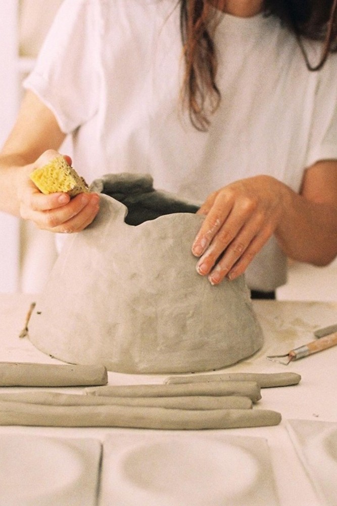 La ceramista utilizza la tecnica della modellazione, quindi tutto è fatto a mano, senza l'uso di macchine. Lei tiene molto a che le tracce del processo creativo si ritrovino sull'oggetto.