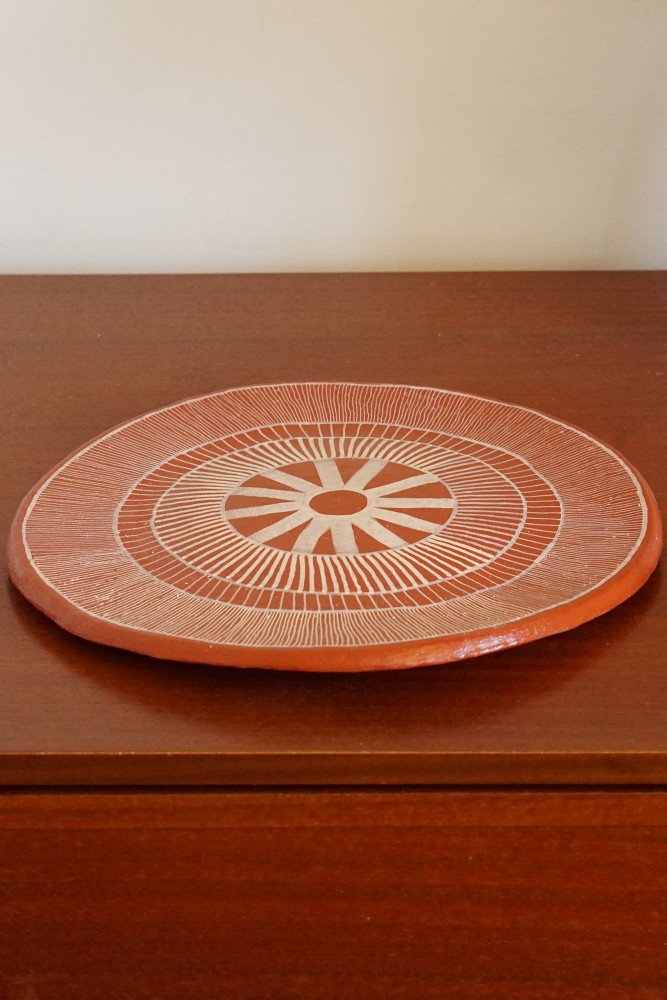Piatto decorativo in ceramica terracotta realizzato artigianalmente in Tunisia.