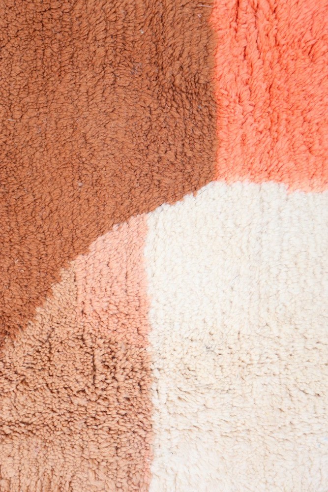 Questo tappeto berbero chiamato Azilal prende il nome dalla regione di Azilal in Marocco dove è stato realizzato a mano su un telaio tradizionale in legno. I suoi motivi rappresentano gli stati d'animo, gli amori, le angosce della tessitrice al momento della creazione. Una volta creato questo tappeto berbero colorato, ne creerà un altro totalmente diverso, in base alle sue emozioni del momento. Ogni pezzo è quindi unico.