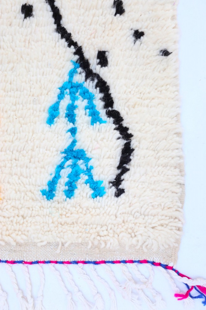 Questo tappeto berbero chiamato Azilal prende il nome dalla regione di Azilal in Marocco, dove è stato realizzato a mano su un telaio tradizionale in legno. I suoi motivi rappresentano gli stati d'animo, gli amori, i dolori della tessitrice al momento della sua creazione. Una volta che questo tappeto berbero colorato è stato creato, ne creerà un altro completamente diverso, in base alle sue emozioni del momento. Ogni pezzo è quindi unico.