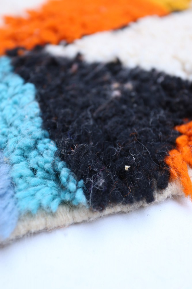 Questo tappeto berbero chiamato Azilal prende il nome dalla regione di Azilal in Marocco, dove è stato realizzato a mano su un telaio tradizionale in legno. I suoi motivi rappresentano gli stati d'animo, gli amori, i dolori della tessitrice al momento della sua creazione. Una volta che questo tappeto berbero colorato è stato creato, ne creerà un altro completamente diverso, in base alle sue emozioni del momento. Ogni pezzo è quindi unico.