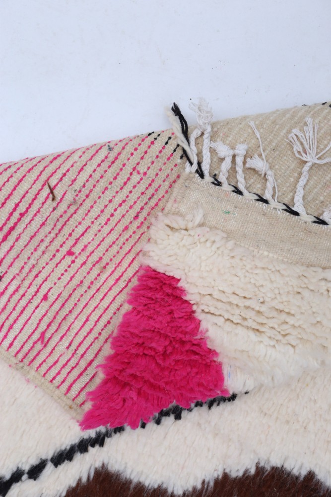 Questo tappeto berbero chiamato Azilal prende il nome dalla regione di Azilal in Marocco, dove è stato realizzato a mano su un telaio tradizionale in legno. I suoi motivi rappresentano gli stati d'animo, gli amori, i dolori della tessitrice al momento della sua creazione. Una volta che questo tappeto berbero colorato è stato creato, ne creerà un altro completamente diverso, in base alle sue emozioni del momento. Ogni pezzo è quindi unico.