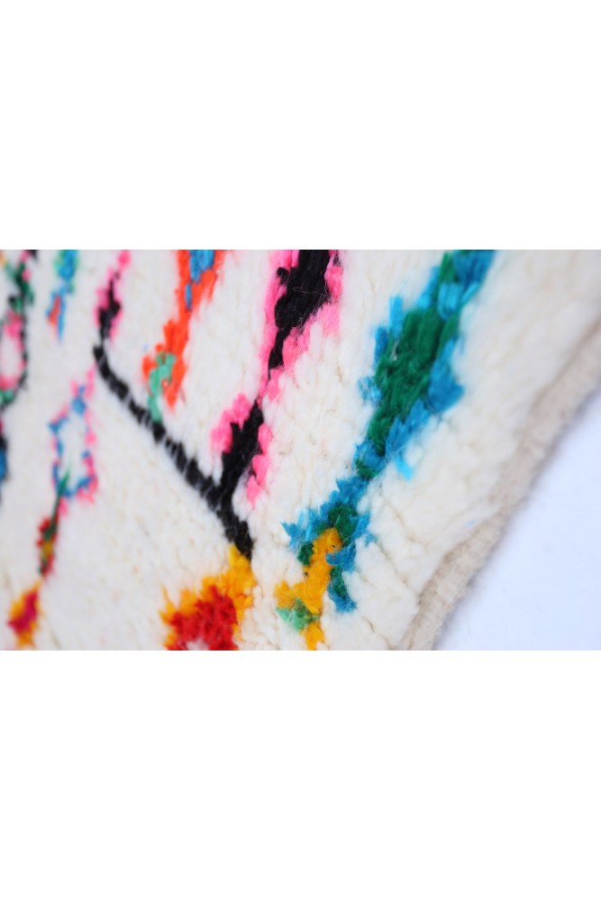 Questo tappeto berbero chiamato Azilal prende il nome dalla regione di Azilal in Marocco, dove è stato realizzato a mano su un telaio tradizionale in legno. I suoi motivi rappresentano gli stati d'animo, gli amori, i dolori della tessitrice al momento della sua creazione. Una volta che questo tappeto berbero colorato è stato creato, ne creerà un altro completamente diverso, in base alle sue emozioni del momento. Ogni pezzo è quindi unico.