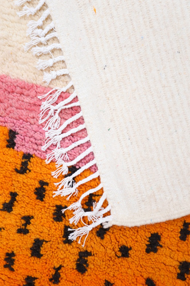 Tappeto Azilal in lana di pecora realizzato a mano su un telaio tradizionale nelle montagne dell'Atlante in Marocco.