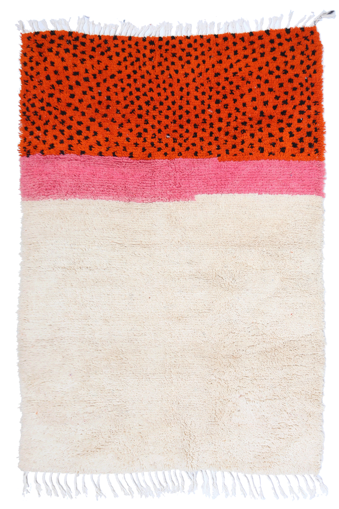 Tappeto Azilal in lana di pecora realizzato a mano su un telaio tradizionale nelle montagne dell'Atlante in Marocco.