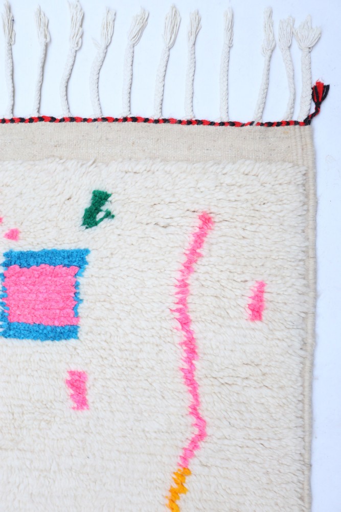 Tappeto Azilal in lana di pecora realizzato a mano su un telaio tradizionale nelle montagne dell'Atlante in Marocco.