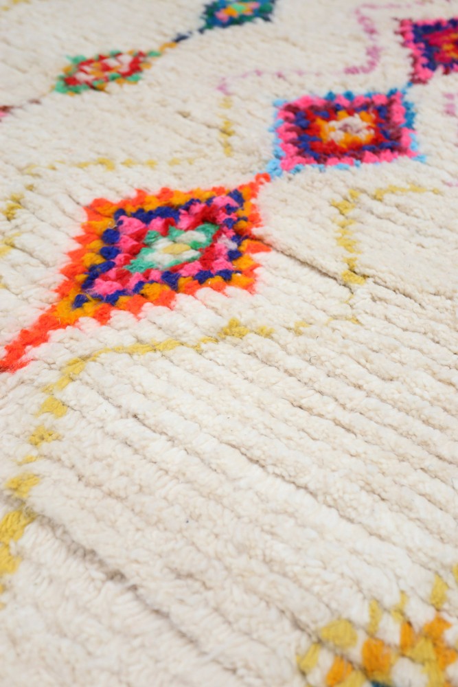 Tappeto Azilal in lana di pecora realizzato a mano su un telaio tradizionale nelle montagne dell'Atlante in Marocco.