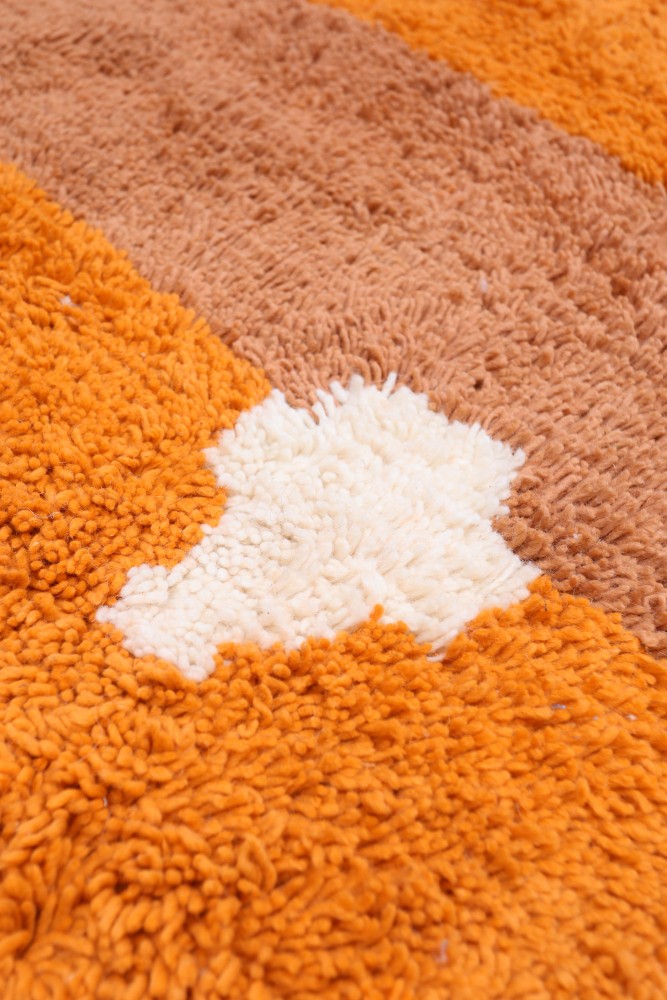 Questo tappeto berbero chiamato Azilal prende il nome dalla regione di Azilal in Marocco, dove è stato realizzato a mano su un telaio tradizionale in legno. I suoi motivi rappresentano gli stati d'animo, gli amori, i dolori della tessitrice al momento della sua creazione. Una volta che questo tappeto berbero colorato è stato creato, ne creerà un altro completamente diverso, in base alle sue emozioni del momento. Ogni pezzo è quindi unico.