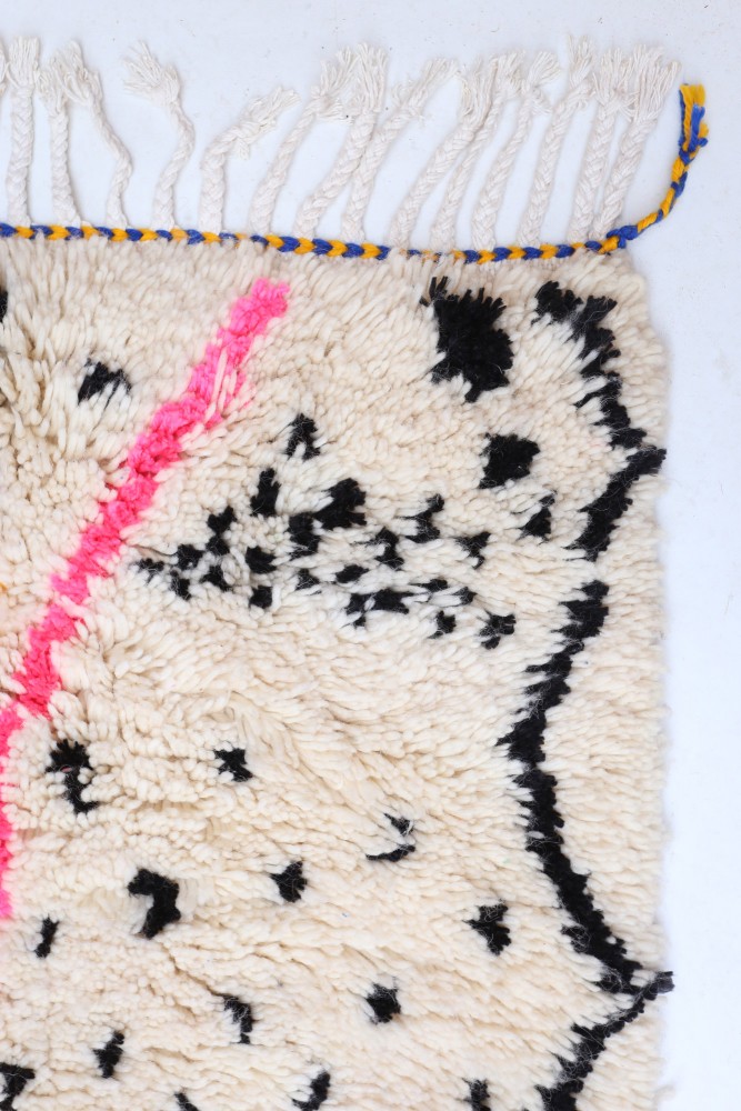 Tappeto Azilal in lana di pecora realizzato a mano su un telaio tradizionale nelle montagne dell'Atlante in Marocco.