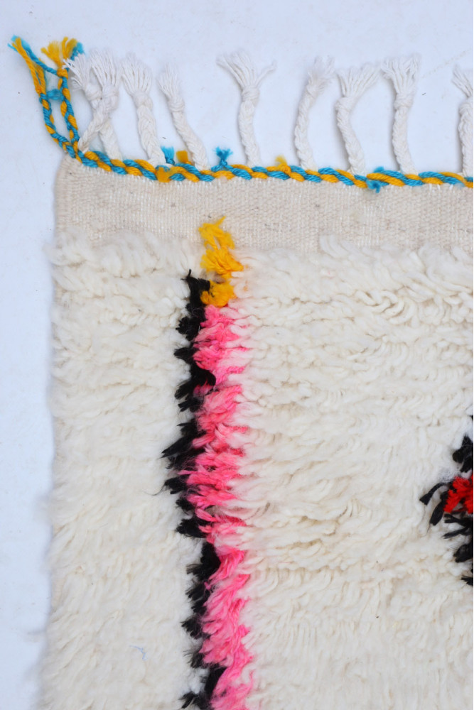 Tappeto Azilal in lana di pecora realizzato a mano su un telaio tradizionale nelle montagne dell'Atlante in Marocco.