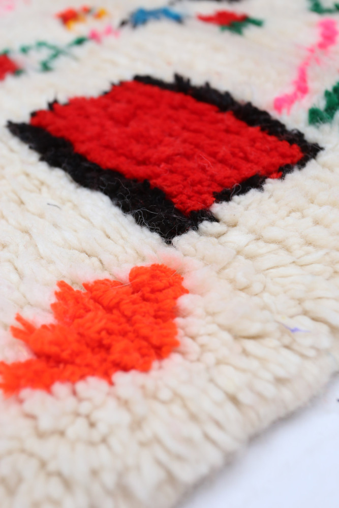 Tappeto Azilal in lana di pecora realizzato a mano su un telaio tradizionale nelle montagne dell'Atlante in Marocco.
