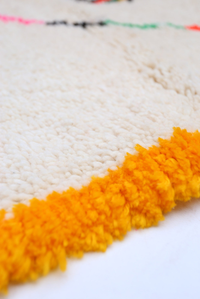 Questo tappeto berbero chiamato Azilal prende il nome dalla regione di Azilal in Marocco, dove è stato realizzato a mano su un telaio tradizionale in legno. I suoi motivi rappresentano gli stati d'animo, gli amori, i dolori della tessitrice al momento della sua creazione. Una volta che questo tappeto berbero colorato è stato creato, ne creerà un altro completamente diverso, in base alle sue emozioni del momento. Ogni pezzo è quindi unico.