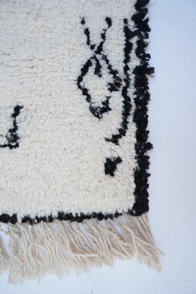 Grande tappeto berbero Beni Ouarain con motivi astratti in bianco e nero