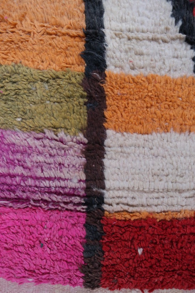 Questo tappeto berbero chiamato Azilal prende il nome dalla regione di Azilal in Marocco, dove è stato realizzato a mano su un telaio tradizionale in legno. I suoi motivi rappresentano gli stati d'animo, gli amori, i dolori della tessitrice al momento della sua creazione. Una volta che questo tappeto berbero colorato è stato creato, ne creerà un altro completamente diverso, in base alle sue emozioni del momento. Ogni pezzo è quindi unico.