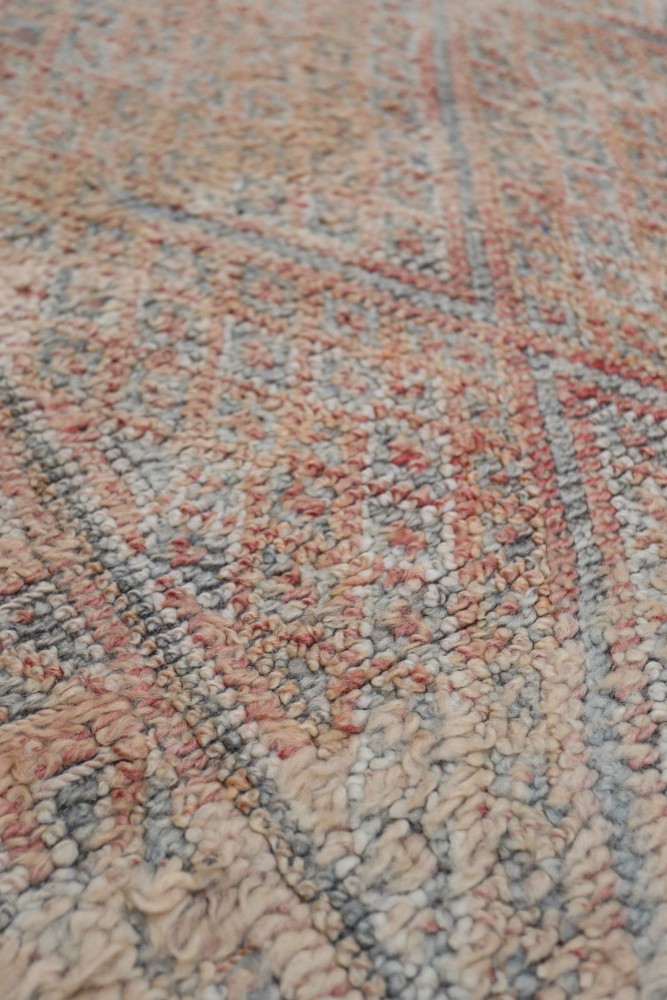 Tappeto Boujad antico in lana realizzato a mano su un telaio tradizionale nelle montagne dell'Atlante in Marocco.