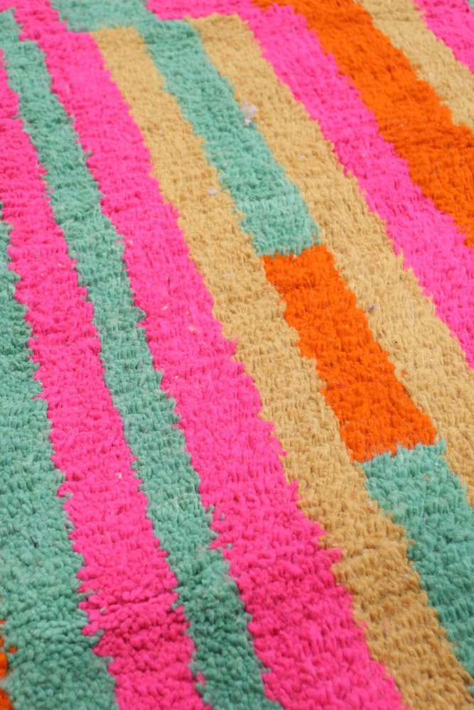 Uiteindelijk, laat je verleiden door het. Boujad tapijt, Een tapijt dat rijk is aan symboliek voor de weefsters van de Atlas. Ze laten hun creativiteit spreken met levendige kleuren en een moderne artistieke benadering. De kleurencombinaties lijken chaotisch en trekken meteen de aandacht. De vrouwen gebruiken gerecyclede materialen en textiel, maar ook katoen en wol. Het zijn kunstwerken die bruisen van vitaliteit en spontaniteit !