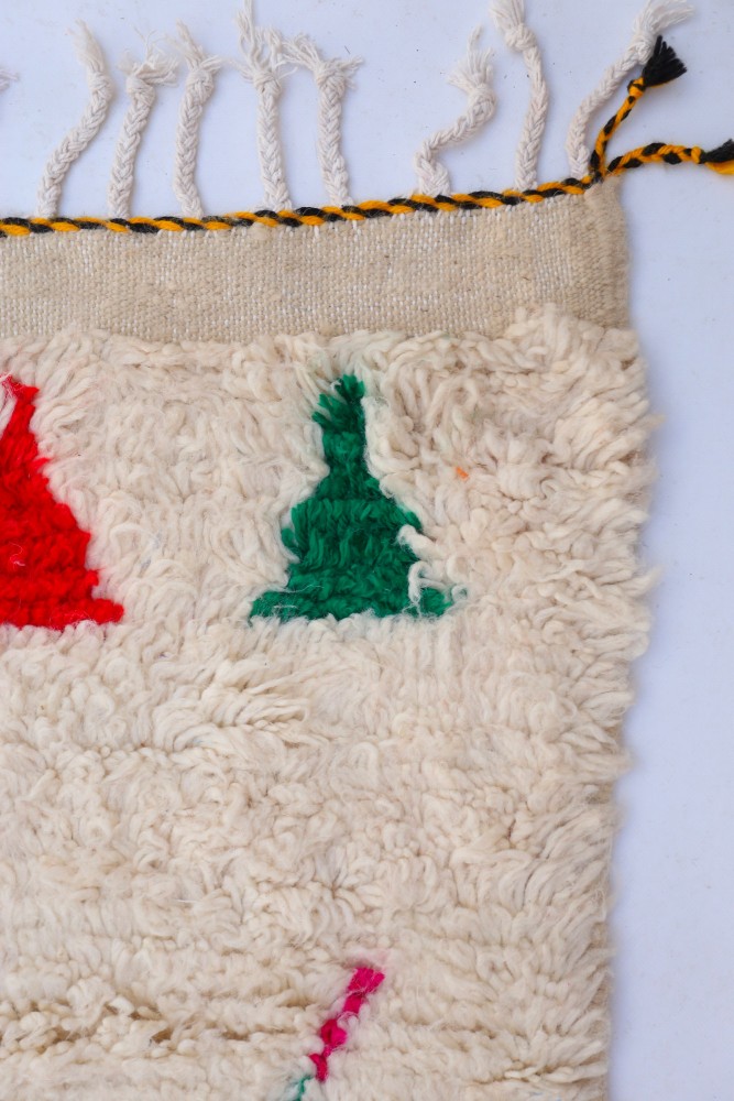 Azilal tapijt gemaakt van schapenwol, met de hand geweven op een traditioneel weefgetouw in de Atlasgebergte in Marokko.