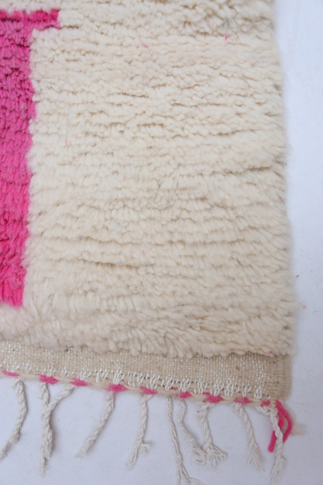 Deze Berberse tapijt genaamd Azilal dankt zijn naam aan de regio Azilal in Marokko waar het met de hand is geweven op een traditioneel houten weefgetouw. De patronen vertegenwoordigen de stemmingen, liefdes en verdriet van de weefster op het moment van creatie. Nadat dit gekleurde Berberse tapijt is gemaakt, zal ze een volledig ander tapijt maken, afhankelijk van haar emoties op dat moment. Elk stuk is dus uniek.