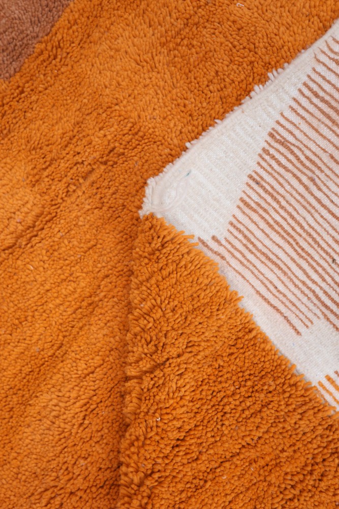 Deze Berberse tapijt genaamd Azilal dankt zijn naam aan de regio Azilal in Marokko waar het met de hand is geweven op een traditioneel houten weefgetouw. De patronen vertegenwoordigen de stemmingen, liefdes en verdriet van de weefster op het moment van creatie. Nadat dit gekleurde Berberse tapijt is gemaakt, zal ze een volledig ander tapijt maken, afhankelijk van haar emoties op dat moment. Elk stuk is dus uniek.