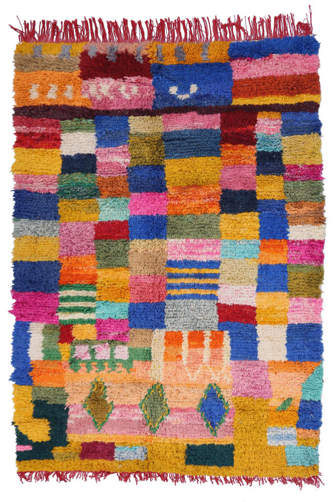 Tapijt Azilal gemaakt van schapenwol, met de hand geweven op een traditioneel weefgetouw in de bergen van de Atlas in Marokko.